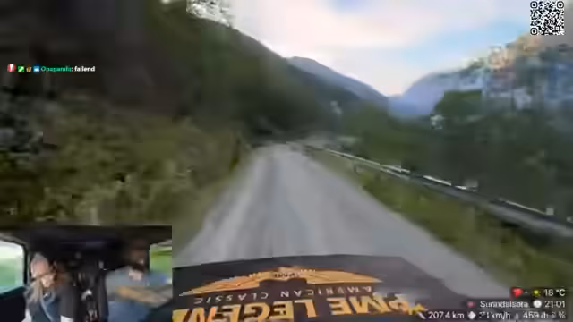 01:58:45Die eigentliche Fahrt über den Trollstiegen begann mit dem Einlegen des zweiten Gangs und vorsichtiger Fahrweise, da die Straße sehr steil und enge Kurven aufweist. Es kam zu gefährlichen Situationen, in denen ein Radfahrer den Fahrer aufhielt und fast zu einem Zusammenstoß kam. Nach der aufregenden Passage über den Pass wurde eine Pause eingelegt, um die Drohne zu landen und den Akku zu wechseln, um weitere spektakuläre Aufnahmen zu ermöglichen.