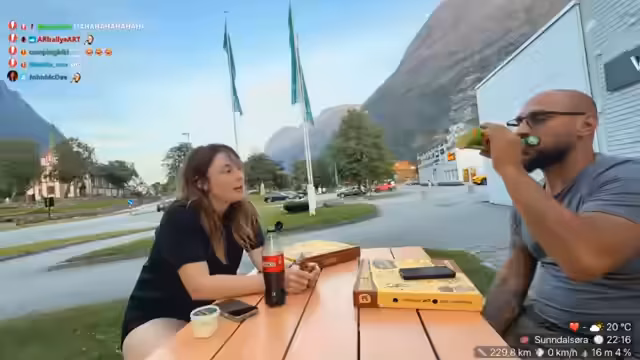 05:45:23Nach den technischen Problemen und Survival-Situationen konzentrieren sich die beiden auf die Weiterfahrt und die Planung für die nächsten Stunden. Als erstes geht es darum, eine Lauchsuppe mit Hackfleisch und Schmelzkäse zu kochen. Danny weigert sich dabei, Zutaten wie Gemüsebrühe oder Sahne mitzunehmen, die später weggeschmissen werden müssten. Als nächstes Ziele werden ein Wasserfall, der Mardalsfrosten, und der Kauf von Lebensmitteln erwähnt. Es ist geplant, dass die Streamerin nach dem Einkauf neue Clips und Challenges für ihre Follower hochlädt, während Danny die Routenplanung übernimmt.