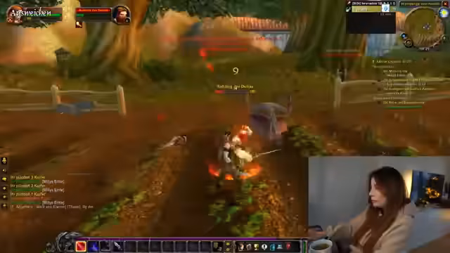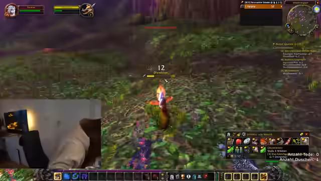 06:10:00Verena und Juni starten mit ihren Charakteren in World of Warcraft Classic. Verena spielt einen Level 7 Paladin, Juni einen Level 8 Schurken. Sie beginnen mit gemeinsamen Quests in den Startgebieten, erledigen Aufgaben wie das Töten von Wildschweinen und sammeln Eberbrocken. Es gibt Diskussionen über Spielmechaniken, Questlogistik und die Schwierigkeit, bestimmte Gegenstände zu looten. Verena plant, bis Level 10 aufzusteigen, um den Fähigkeitenbaum zu erkunden.