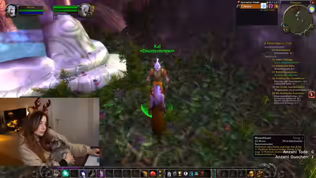 12:51:25Die Spielerin experimentiert mit komplexen Rotationsmustern für ihre Druidenfähigkeiten (Zorn, Wurzeln, Mond) und erkennt, dass hohe Konzentration nötig ist. Sie erwähnt mögliche Roleplay-Elemente für zukünftige Charakteränderungen und diskutiert mit dem Chat, wie sie ihre Klassenfähigkeiten optimieren kann. Dabei zeigt sie sich motiviert, als Heilerin oder Tank in Gruppeninhalten zu spielen.
