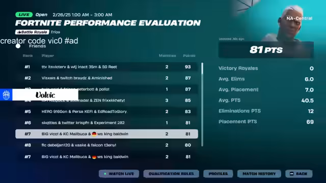 Für das laufende NA EVAL CUP wurde eine Zusammenarbeit zwischen Vicotryona und zwei FNCS-Gewinnern angekündigt. Das Ziel ist es, die Region A zu dominieren. Die strategische Vorbereitung und die intensive Kommunikation im Team stehen während der Partien im Mittelpunkt, um die nötigen Punkte für das Turnier zu sammeln.