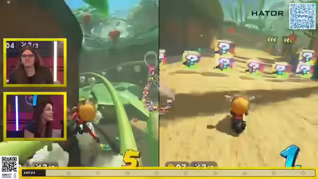00:23:22Nach einer kurzen Pause startet das erste interaktive Segment: eine Crash Bandicoot-Speedrun-Challenge. Nach einer kurzen Erklärung der Spielmechaniken und des Speedrun-Ziels – so schnell wie möglich durch die Level zu kommen – starten die Creator Janeli, Verena, JokerStreamOK, Loco Lea und Icy Vace in ihre vorgegebenen Level. Dabei kommt es zu humorvollen und spannenden Momenten, wenn die Teilnehmer mit den ungewohnten Controllern kämpfen und die teils salzigen Levels meistern.