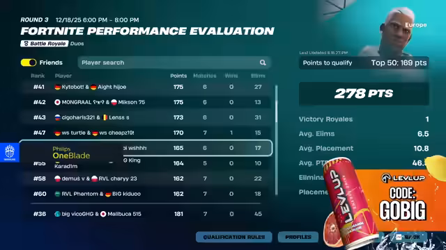 02:20:12Nach intensiver Punkteberechnung und Verfolgung der Leaderboards bestätigt vicotryona die erfolgreiche Qualifikation für das Finale des Duo-Cups mit 'EZ qual'. Er erwähnt, dass Konkurrenten wie Mongrel es nicht geschafft haben, und andere Teams wie Focus und Thomas liegen knapp unterhalb des Duo-Paares. Trotz Problemen mit den Fortnite-Trackern durch übermäßiges Refreshen ist die Qualifikation gesichert.