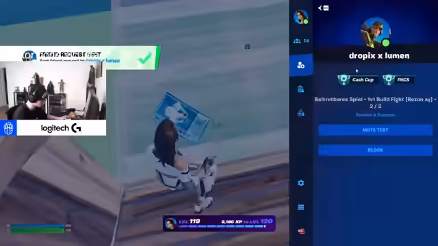 Es wurde ein Live-Event von einem Fortnite-Champion aufgezeichnet.