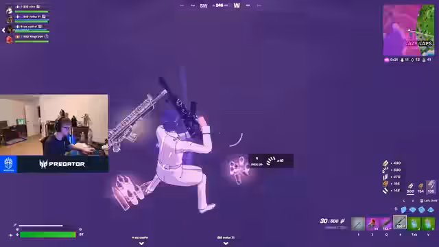 00:06:34Der Streamer beschreibt das System der Qualifikationsrunden für den Reload Cup. Es wird in Heats aufgeteilt und er muss um 10 nach einer vollen Stunde queuen. Er äußert seine Verwirrung über die genauen Startzeiten und welche Spieler wann antreten müssen. Der Streamer rühmt sich selbst als der beste Spieler und G.O.A.T., während er jedoch massiv unter technischen Problemen leidet. Er klagt über die schlimmsten FPS-Einbrüche im gesamten Reload, die so schlimm waren, dass er Angst hatte, sein PC würde abbrennen, was die Performance extrem negativ beeinflusste.