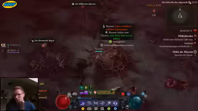 00:15:19Der Streamer kehrt nach einer kurzen Pause zurück und erklärt, dass er gewartet hat, um mit dem neuen Patch 5/10 weiterzuspielen, der pünktlich um 19 Uhr erwartet wird. Er zeigt Vorfreude auf das Farmen von Höllenhorden, neue Seelentürme und gebuffte Höllenblüter sowie Flüsterbaum-Truhen. Der Weltboss 'Qual 2' wird erwähnt, und es geht um Härtungsrezepte, die er erhalten möchte. Der Patch soll das Spiel entspannter machen, besonders für neue Charaktere.