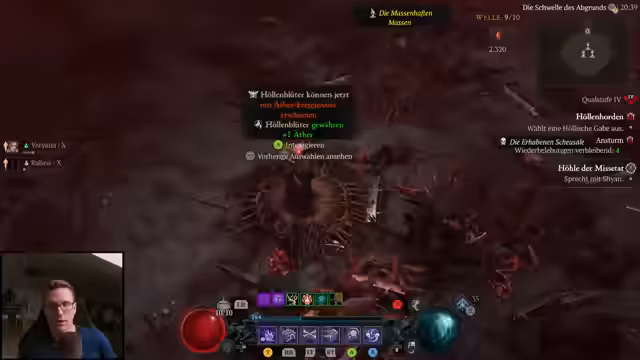 02:02:09Der Spieler betritt die neue Höllenhorde-Arena, um die Patch-Neuheiten zu testen. Er stellt fest, dass die Seelentürme nun effizienter gestaltet sind, mit einer größeren Abdriftzone und schnelleren Gegnern, was den Farmprozess beschleunigt. Die Belohnungsmechaniken haben sich verbessert, da die Ressourcen jetzt weniger sinken und der Schadens-Stacking von bis zu zehn Stufen die Effektivität erhöht. Er bemerkt, dass bei ätherischen Massen häufig mehrere Höllenblüter gleichzeitig spawnen, was zwar nützlich, aber noch unzuverlässig ist. Die Erfahrung wird als deutlicher Fortschritt gewertet, auch wenn die Ausbeute an Aether anfangs noch unter den Erwartungen liegt.