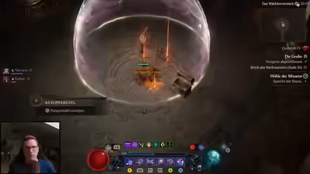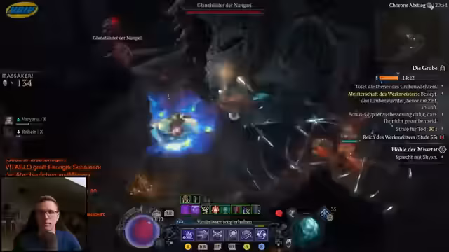 04:12:52Der Fokus liegt auf der 'Pit 100 Challenge'. Der Streamer betont, dass das Finden des gesuchten Items 'Ebenstecher' der Schlüssel für den Erfolg sein könnte, auch wenn der Build theoretisch ohne dieses Item durch die 100er Grube kommen sollte. Es wird die Notwendigkeit besprochen, noch mehr Glyphen zu leveln und sich für Trainingseinheiten vorzubereiten, um den maximalen Schaden aus dem Build herauszuholen.