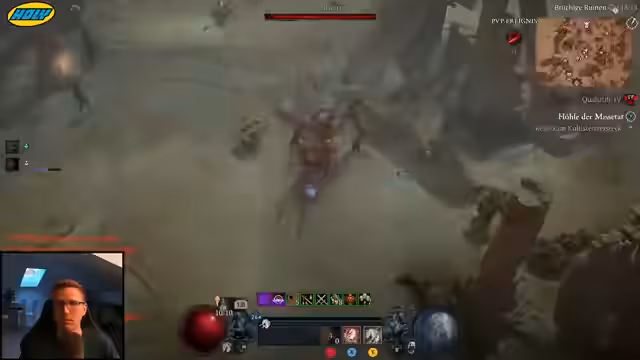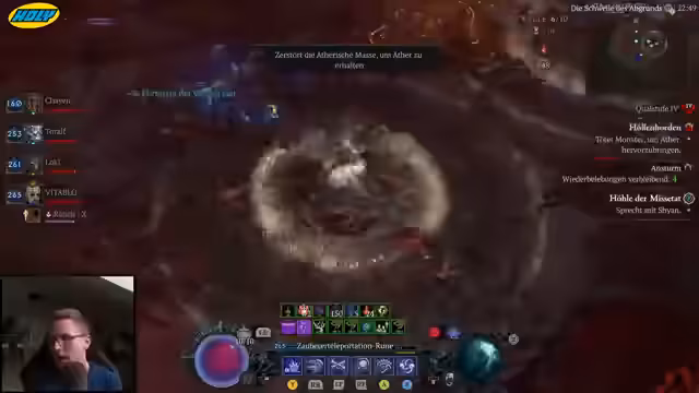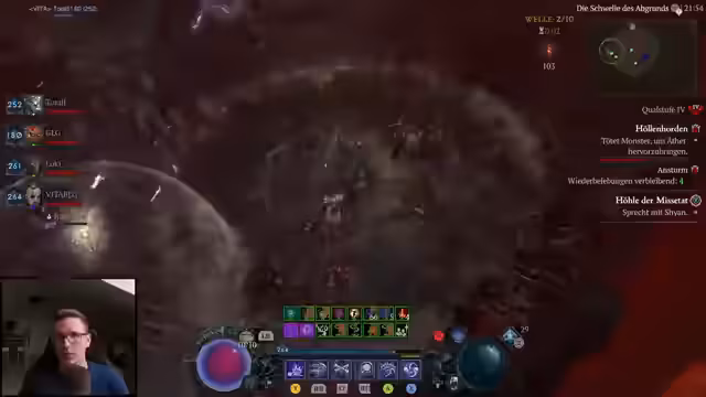 02:34:38Nach Patch-Änderungen testet der Spieler die Buffs der Höllenblüter, speziell der verborgenen Variante, die nun häufiger bei ätherischen Ereignissen erscheint. Er beobachtet, dass insbesondere bei ätherischen Massen deutlich mehr Höllenblüter spawnen, was die Taktik aufwerten könnte, jedoch schwankende Ergebnisse zeigt. Parallel vergleicht er ausführlich die Controller- und Maus-Steuerung, wobei er auf eine als unlogisch empfundene Distanzreduktion bei Teleport-Fähigkeiten am Controller hinweist. Er schlägt eine Lösung durch variablen Stick-Druck vor, um Max-Reichweite zu erreichen, und kritisiert inkonsistente Skill-Verhaltensweisen zwischen Eingabegeräten, die das Gameplay ungerecht beeinflussen.