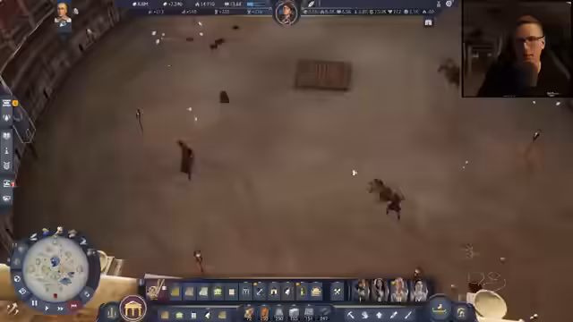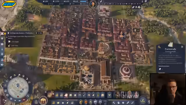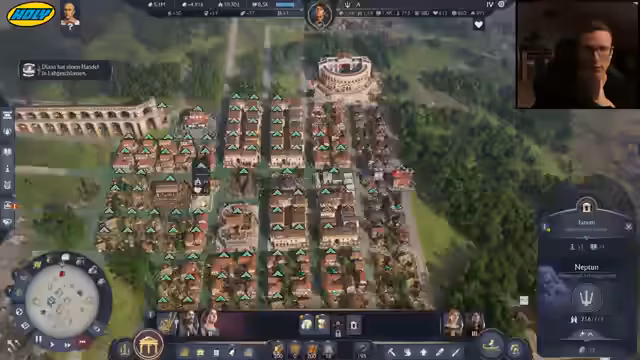 04:55:27Der Streamer nutzt die dreifache Geschwindigkeit, um die Stadtentwicklung zu beschleunigen. Die Bäder und der Tempel sind optisch beeindruckend, besonders der Tempel mit seinem Moosbewuchs. Albion ist vorerst abgeschlossen, da alle wichtigen Produktionsketten aufgebaut sind. Fehlende Güter wie Glas und Togen sind auf der anderen Welt (Latium) verfügbar, während in Albion produzierte Güter wie Streitwagen nach Latium exportiert werden können. Es fehlen noch einige Dinge wie Fellmützen, zeremonielle Schilde, Hosen und Bier, die jedoch auf anderen Inseln oder durch weitere Forschung freigeschaltet werden können. Die Gesamtbevölkerung beider Provinzen ist ungefähr gleich groß, wobei Latium mit etwa 1000 Bewohnern führt. Der Streamer startet Gladiatorenspiele, die 20 Minuten Vorbereitungszeit benötigen und dann zwei Stunden laufen. Während der Spiele erhalten Brot- und Weinketten einen Bonus von 50%. Es wird spekuliert, ob es am Ende der Spiele wie in Anno 1800 besondere Belohnungen wie Items oder NPCs gibt. Die Zuschauer können den Spielen beiwohnen, wobei die oberen Ränge des Stadions leer bleiben. Das Spiel fordert Leder und Eisen, später Ochsen. Der Streamer beendet den Stream für heute und kündigt ein Anno-Video für den nächsten Morgen an, das Tipps für neue Spieler und die Anno.land-Seite vorstellen wird. Am nächsten Tag wird er in Latium expandieren und weitere Forschungszweige freischalten.