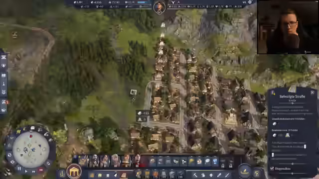 03:08:48Die Siedlung wird auf die Stufe der 'Ältesten' aufgewertet, was ein neues und ästhetisch ansprechendes Gebäudedesign mit Bäumen mit sich bringt. Die Ältesten benötigen Rinderbraten oder Wein, wofür Salzkraut und Granit benötigt werden. Die Mini-Insel, die bereits bis zu den Edelmännern entwickelt wurde, muss nun auch für die Granitgewinnung weiter aufgerüstet werden, was die Komplexität der Inselentwicklung weiter erhöht. Es wird festgestellt, dass der Granitsteinbruch nur Schmiedearbeitskräfte benötigt und nicht die dritte Stufe der Ältesten, was eine vorherige Fehleinschätzung korrigiert. Die Route für Granit wird erweitert, und ein Granitschneider wird platziert. Eine wichtige Entdeckung wird gemacht: Straßen können durch einfaches Hovern mit der Maus über Gebäude automatisch gebaut werden, ohne zu klicken. Diese Funktion, die als nicht intuitiv, aber äußerst zeiteffizient beschrieben wird, hätte den Straßenbau erheblich beschleunigt.