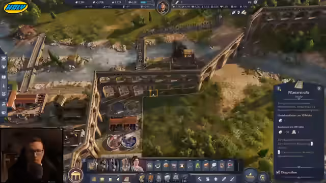 01:46:50Die Vorbereitungen für das Upgrade der Siedlung auf die nächste Stufe nehmen weiter Gestalt an. Es werden Muscheln gesammelt, Aale beschafft und der Kontor strategisch neu positioniert, um die Effizienz zu steigern. Ein Holzfäller wird installiert, um eine kontinuierliche Holzversorgung zu gewährleisten. Während dieser Bauphasen kommt es zu einem Austausch über Anno-Erfahrungen, wobei ein Zuschauer erwähnt, dass Anno 1404 sein letztes gespieltes Anno war und er nun mit Anno 117 zurückkehrt. Der Streamer teilt seine eigenen Erfahrungen mit Anno 1404 und dem Add-on Venedig sowie Anno 1800. Es wird auch über die Verfügbarkeit des Spiels diskutiert, da physische Versionen bereits spielbar sind, während der digitale Release erst später am Abend erfolgt. Die Notwendigkeit, Bergzugänge für zukünftige Erweiterungen zu reservieren, wird ebenfalls erkannt und umgesetzt.