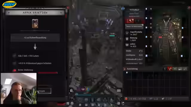 00:16:00Der Stream startet mit dem überraschenden Erscheinen eines Weltbosses, der den Streamer sofort beschäftigt. In Eile werden die Items von der Zauberin zurück auf den Druiden transferiert, um am Kampf teilnehmen zu können. Dies wird als Glücksfall und gutes Timing betrachtet. Die Hauptziele für den Stream werden definiert: die Jagd nach einem neuen Amulett, das Glyphen zu leveln und das vervollständigen eines vererbten Amuletts. Es folgt eine kurze Unterbrechung, um sich die Umfrage aus der Zeit des Streamstarts anzusehen.