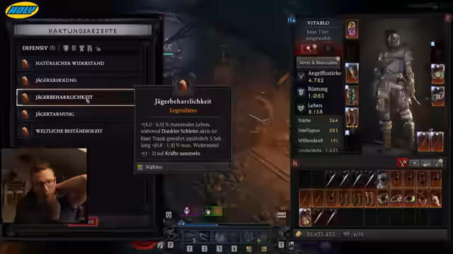 00:53:41Der Stream wechselt zu einem Hardcore-Diablo 4-Spiel, wobei der Fokus auf dem Überleben und dem Sammeln von legendären Härtungsrezepten liegt. Ein zentraler Punkt ist die kritische Untersuchung der Verteidigungsmechaniken. Der Streamer stellt fest, dass die Deflect-Mechanik im Vergleich zum Energieschild zu schwach ist, da man nur schwer auf 100% Deflection kommt und es weiterhin das Risiko von One-Shots gibt. Währenddessen kämpft er sich durch die Zone Nahantu, um Wegpunkte zu freischalten und wertvolle Rezepte zu farmen, wobei er dieine Unentschlossenheit bei der Wahl der Upgrades für die vermachten Items deutlich macht.