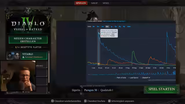00:15:36Der Stream beginnt mit einer detaillierten Untersuchung der Spieler-Retention in Diablo 4 im Vergleich zu Path of Exile und Last Epoch. Basierend auf Daten von SteamDB wird der Prozentsatz der Spieler analysiert, die nach zwei Wochen eine verlassen. Interessanterweise zeigt Diablo 4, insbesondere in Season 9, einen ähnlich hohen Abwanderungs wie PoE, während Last Epoch mit über 70% Verlusten am schlechtesten abschneidet. Die Analyse kritisiert einen viralen Reddit-Chart als falsch abgebildet, da er den anfänglichen Abwärtstrend überzeichnet und den späteren, flacheren Verlauf nicht korrekt darstellt.