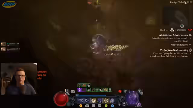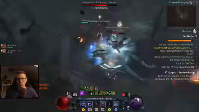 02:28:06Der Streamer identifiziert Chaos-Portale und Albtraum-Dungeons als die lohnendste Farmquelle für wertvolle Ressourcen wie Season-Währung und vermachte Items. Die hohe Effizienz dieser Methode wird betont. Gleichzeitig wird das ständige Risiko in Hardcore thematisiert, bei dem ein einziger Fehler, wie das Sammeln von Beute in der Nähe noch lebender Monster, zum sofortigen Tod führen kann. Die seltene Drop-Rate von Kompassen für Nightmare Dungeons wird als frustrierend, aber notwendig für die weiterführende Charakterentwicklung beschrieben.
