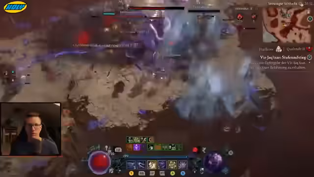 03:12:59Ein seltener Fund bei den Schuhen mit Bewegungstempo und Glückstrefferchance auf Benommenheit freut den Streamer sehr, da dies perfekt in seinen Skill-Build passt. Gleichzeitig muss er einen Abstrich bei den Resistenzen hinnehmen, was ein bekanntes Problem in Hardcore darstellt. Die Verbesserung des Schadens wird durch die Ausrüstung neuer Items und das Finden passender Affixe wie bei einem Ring mit Glückstrefferchance auf Verwundbarkeit vorangetrieben. Es wird deutlich, wie kleinvieles Zusammenspiel für einen starken Build entscheidend ist.