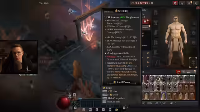 01:40:48Der Streamer widmet sich dem neuen Paragon-Baum, speziell dem Knoten 'Engarde' für Damage Reduction, und erörtert die neuen Limits. Er testet den neuen Schaden-Hebel des Paladins ('Castle'), der den Schaden auf die 'Damage Reduction' reduziert, und nennt den resultingenden Nerf trotz der Berechnung hart, aber notwendig für die Spielbalance. Der Paladin werde zwar schwächer, aber weiterhin stark sein. Der Test des neuen Builds mit blutigen Items beginnt, wobei das Fehlen von 'Heilung'-Effekten und göttlichen Gaben deutlich wird.
