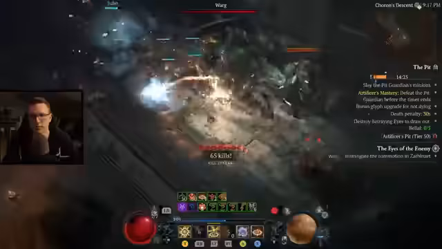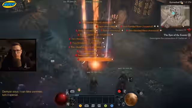01:30:04Es wird der Termin für den offiziellen Diablo-Stream am 11. Februar bekannt gegeben. Der Streamer experimentiert weiter mit Item-Affixen wie Cooldown Reduction und Ressourcenkostenreduktion und steckt sie in die Truhe. Eine persönliche Anekdote über den kalten Winter unterbricht kurz den Gameplay-Fokus. Er konzentriert sich wieder auf den Aufbau eines Builds und wünscht sich speziell eine Hose mit Crit Chance, wobei ihm das Glück im Gegensatz zur vorherigen Season zu weh erscheint.