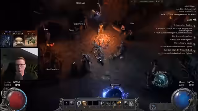 08:16:12Im späteren Spielverlauf werden neue Monstertypen wie der Wisp und der Superboss angetroffen. Diese werden als ätzend und deutlich stärker als die Kampagnenbosse eingestuft. Ein Kampf gegen den Boss mit einer ungünstigen Modifikation (gegenseitige Heilung) gestaltet sich als extrem schwierig und führt zu einem nahtod. Die Kombination dieser neuen, herausfordernden Gegner wird als deutlicher Schwierigkeitssprung in Path of Exile 2 empfunden.
