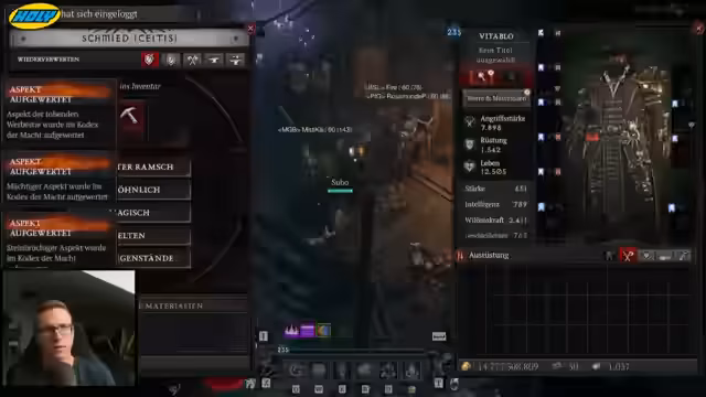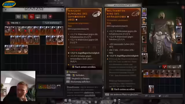 01:50:44Die Ausrüstung des Druiden wird konsequent optimiert. Zunächst werden verschiedene Gegenstände auf ihre Tauglichkeit geprüft, darunter ein Stab mit dem Aspekt 'Vasilis', der jedoch trotz guter Werte nicht passt. Die Suche fokussiert sich auf GA-Gegenstände (Grundwerte + Aspekte), wobei das beste GA als das mit 'Willenskraft' identifiziert wird. Dies ist entscheidend für den Schaden des Builds. Helm und Amulett werden gefunden und optimiert, um die maximale Effektivität zu erreichen. Der Helm ist als idealer Baustein für den Skill-Bild bestätigt. Der bisherige Ring wird zugunsten eines legendären Ringes mit besseren Schadenswerten ersetzt, was als 'krass' bewertet wird, da die mythischen Gegenstände hier unterlegen sind.