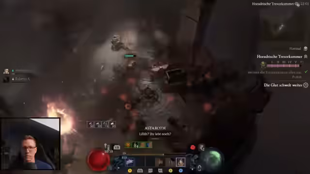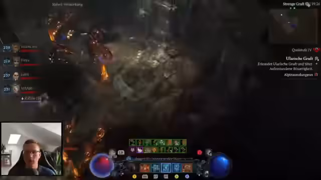vitablo streamt Diablo IV, vollendet 'Projekt Blauzorn' und farmt Obduzid für Waffen. Diskussionen über Hydra-Zauberin, Banner-Blindness und Elite-Gegner-Mods. Clan-Einladungen werden verschickt, Battle Pass Giveaway angekündigt. Der Streamer startet einen Druiden, erkundet Season-Quests und diskutiert Builds und Aspekte. Müdigkeit führt zum Stream-Ende.