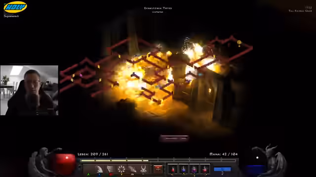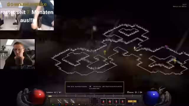 08:43:17Der Streamer kämpft sich durch Douglas Kammer, stößt aber auf mehrere Sackgassen und wird von Skeletten in eine tödliche Falle gelockt. Dies verdeutlicht die geringe Überlebensfähigkeit des Warlock-Builds am Spielanfang. Die Monstergruppe als Ganzes wird als extrem heftig beschrieben, da sie mit einem Schlag tausend Leben wegnehmen kann. Die Situation spitzt sich zu, als der Streamer in eine Gruppe verfluchter, kalte verzauberter Spinnen gerät, die ihn stunlocken und einfrieren, was fast zu seinem Tod führt. Letztendlich gelingt es ihm jedoch, sich zu befreien, ohne das Spiel neu joinen zu müssen.