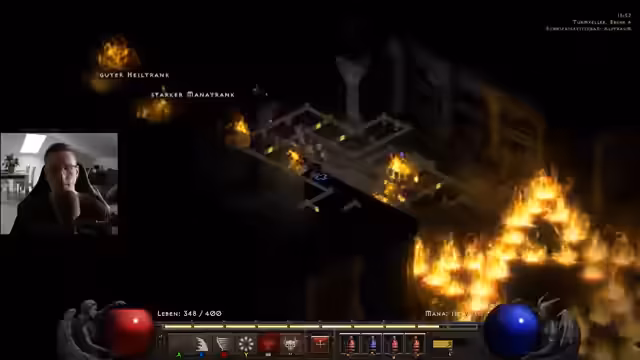 10:53:40Nach anfänglichen Schwierigkeiten gelingt es dem Streamer, mehrere 'Runs' im Chaos-Sanctum ohne Tod zu absolvieren, was er als kleinen Erfolg feiert. Die Motivation steigt, da das 'Farming' nun zuverlässiger verläuft. Er identifiziert wichtige 'Bases' wie die 'Heilige Rüstung' (Tyraels Tränen) und 'Kolossvulge', die wertvoll sind. Der erste wertvolle Gegenstand, ein seltenes Amulett, wird gefunden und per Trade an einen Zuschauer für eine Fall-Rune getauscht, um das 'Gehorsam'-Runenwort vorzubereiten.