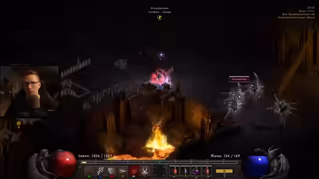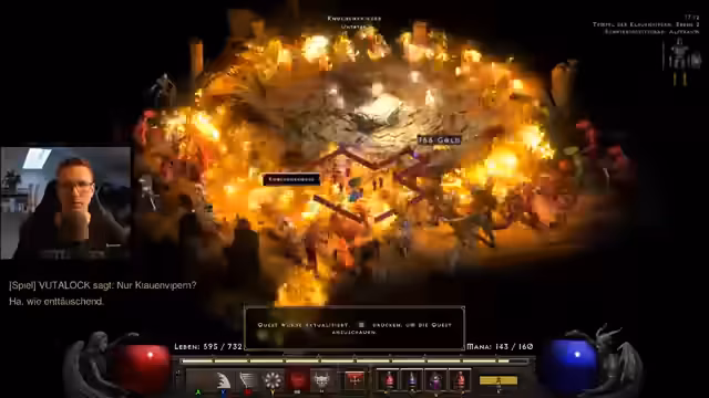 10:08:34Der Streamer erreicht endlich Akt 4 und ist bereit, mit der Schmied-Quest zu beginnen. Sein Ziel ist es, bis Level 80 zu steigen, eine Elite-Base zu finden und dann umzuskillen, um den Schmied-Quest-Bonus zu maximieren. Der Eintritt in Akt 4 verläuft jedoch holprig. Er steckt am Durchgang durch die Fackel fest und stirbt beinahe, was seine Frustration über den aktuellen Spielverlauf verstärkt. Nach einem Neustart des Spiels gelingt ihm der Durchgang und er ist motiviert, trotz der Rückschläge weiterzuspielen.