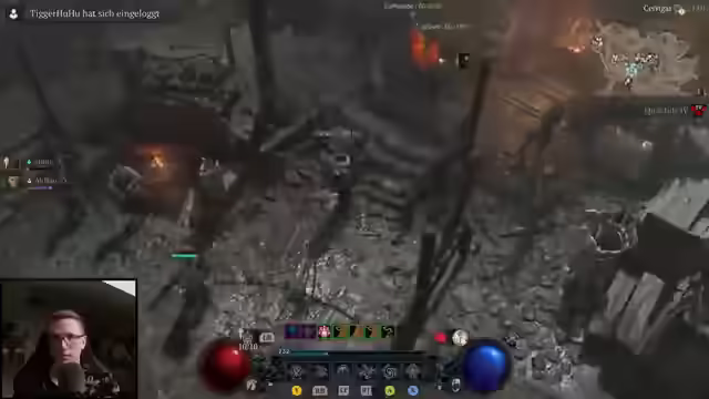 04:30:17Der Streamer wundert sich, dass er als Streamer die neuen Twitch-Drops mit Starcraft Skins nicht mitbekommen hat und fragt die Zuschauer, wer ebenfalls nichts davon wusste. Viele Zuschauer bestätigen, dass sie es auch nicht wussten. Er erklärt, dass man Twitch- und Battle.net-Account verbinden muss, um die Drops zu erhalten. Der Streamer findet den Dungeon mit den Teleportern nervig und erwähnt, dass sein Helm +7 zu Kernskills gibt, was besser ist als im PTR. Er befindet sich in einer Glückssträhne und farmt schnell Krümmungen. Der Streamer erklärt eine Taktik, wie man mit einem Twink und Schriftrollen schnell Funken farmen kann. Er hat Glück und bekommt den Buff direkt zweimal in einem Run. Der Streamer scherzt, dass Blizzard ihn für den Kauf der Skins belohnt. Er befreit die gefangenen Opfer im Dungeon nicht, sondern nimmt nur den Loot mit. Seine Nase juckt, was laut ihm ein Zeichen für guten Loot ist. Er ist bei 15.000 Krümmungen und hat eine Glückssträhne.