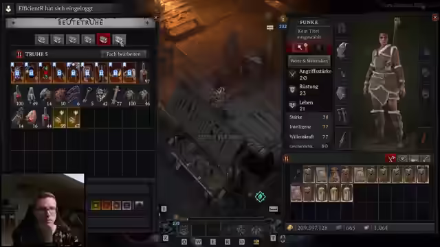 02:13:13Es wird über die Effizienz von Nightmare Dungeons in der Gruppe im Vergleich zu Solo diskutiert, wobei vermutet wird, dass die Gruppe effizienter ist. Der Fokus liegt auf dem Farmen von Chaos-Portalen und dem Erhalt des Schrein-Buffs für Höllenkrümmung, um Rollen zu erhalten. Es wird festgestellt, dass die Höllenkrümmung nicht stackt. Es wird erwähnt, dass jemand Jaron für 50 Millionen Gold das Stück kaufen möchte und man selbst heute sechs Stück für Gold gekauft hat. Es wird geschätzt, dass es etwa zwei Stunden dauern wird, die zwei mythischen Funken zu farmen. Ein Zuschauer merkt an, dass man 89 Rollen benötigt. Es wird festgestellt, dass sehr viel Höllenkrümmung auf dem Boden liegt und das Pad diese nicht gut einsammelt. Die Taktik, Chaos Portal Affix Siegel zu nutzen, wird erläutert, und dass diese vermutlich in der Gruppe einfacher zu farmen sind, da man so mehr Siegel erhält.