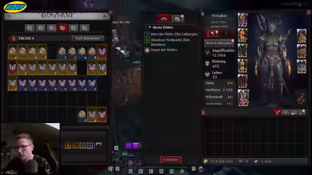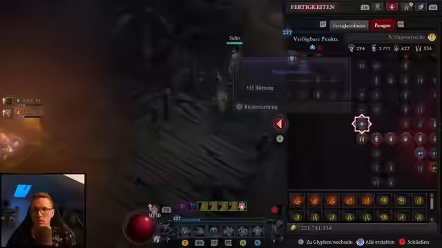 00:47:26Es wird ein Erbe der Verdammnis hergestellt, in der Hoffnung auf Kernränge als Greater Affix. Der Streamer freut sich über eine Glückssträhne, die mit dem Erhalt der Fäuste des Schicksals begann. Kernränge erhöhen den Schaden von knisternder Energie erheblich. Es wird eine Wex-Rune für 60 Millionen gekauft. Die Tull-Rune wird als Standard-Rune festgelegt, zusammen mit Igni, und die Vex-Rune wird mit Zier kombiniert, um Overflow zu erhalten. Der Lieblingsschmied Alberic aus der letzten Season wird aufgesucht, um den Helm zu vollenden. Alberic gewährt einen Doppelhit, was viel Gold spart. Der Streamer ist begeistert über den zusätzlichen Schaden durch die Kern-Skill-Mechanik. Es wird überlegt, ob weitere Punkte in Elektropeitsche investiert werden sollen, um den Schaden noch weiter zu erhöhen. Das fast Max-Damage-Setup ist erreicht, und es geht in die Grube, um Glyphen zu leveln.