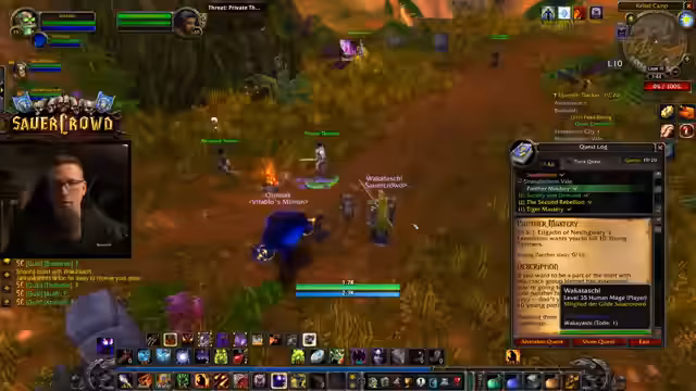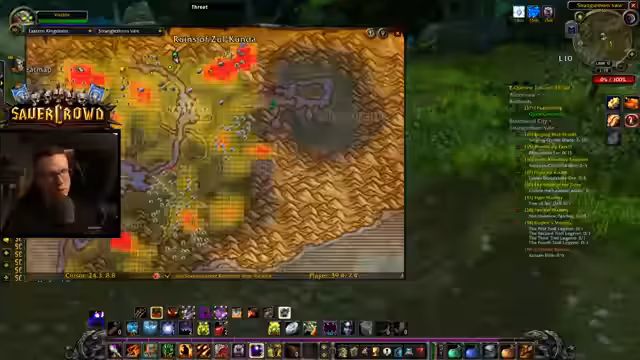 04:25:20Es wird über die nächsten Aktivitäten gesprochen. Man diskutiert, ob man die Quests in Stranglethorn Vale zu Ende macht oder direkt nach Hillsbrad Foothills wechselt. Letztendlich entscheidet man sich für Stranglethorn Vale. Der Streamer beginnt, alleine Questen zu gehen, während die anderen Gruppenaktivitäten in Betracht ziehen. Er sammelt eine große Anzahl von Quests, was zu einem vollen Questlog führt.