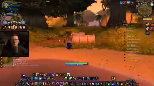 00:54:01Nach einer Diskussion über den Nachteil der Zauber "Phasenverschiebung" und "Feuerschild" macht sich der Streamer auf den Weg, seine in Duskwood wartenden Quests zu beenden. Er erwähnt die Spannung, die die Region für ihn ausgemacht hat, und begibt sich dann zurück nach Stranglethorn. Dort beginnt er, mit einem zufälligen, hochstufigen Spieler zu questen. Die Zusammenarbeit erfordert Vorsicht, um nicht zu sterben. Gleichzeitig kontaktiert er seinen Bruder via Discord wegen eines gemeldeten Fehlers in einem Guide.
