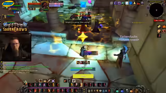 07:30:34Der Stream beginnt mit einer persönlichen Aktion, bei der der Streamer dem Zuschauer Chad eine Aufgabe stellt: Acht Liegestütze zu machen, um ihm anschließend eine Seite zu geben. Dies unterstreicht den interaktiven und humorvollen Charakter des Streams. Im Kontext des Spiels thematisiert der Streamer den Sammelprozess von Quest-Items, indem er erklärt, dass er die Liste der benötigten Gegenstände für die gesamte Gruppe pflegen und jedem Mitglied eine eigene Farbe zuordnen kann, um den Überblick zu behalten. Das Team wird ermutigt, gemeinsam weiter zu agieren. Die wichtigsten Buffs werden für den Dungeonbesuch diskutiert. Es ist geplant, die Buffs von Booty Bay und Sturmwind einzusammeln, obwohl es Verwirrung darüber gibt, ob der Sturmwind-Buff noch aktiv ist. Der Streamer plant, nach South Shore zu fliegen, um dort den Buff zu holen und anschließend mit dem Buff in den Dungeon zu starten.