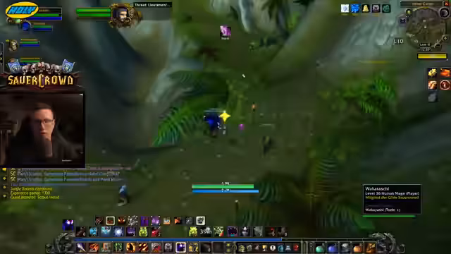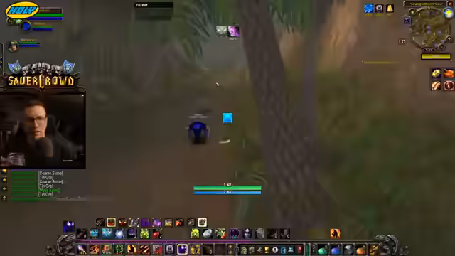 04:50:21Auf dem Weg zu den Queststellen in Stranglethorn Vale stoßen die Spieler auf den Elite-Boss 'Stitches'. Es findet eine Diskussion über die Kämpffähigkeit des Dreier-Teams statt. Der Streamer zweifelt, ob sie den Boss mit nur 200 Schaden pro Frostbolt zu dritten besiegen können. Man beschließt, den Boss zu umgehen, da der Kampf als zu risikoreich und zeitaufwändig eingestuft wird.