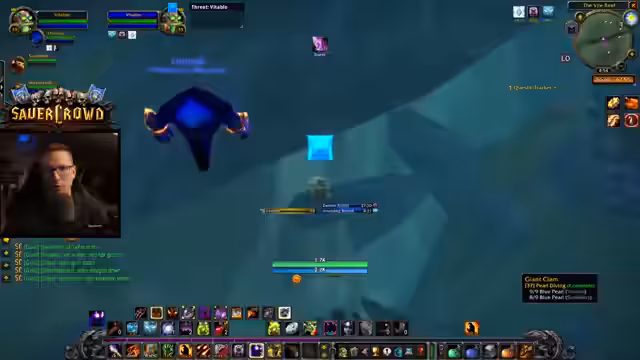 01:43:08Der Stream beginnt mit der gemeinsamen Unterwasser-Quest in Stranglethorn. Ziel ist es, Muscheln und Perlen von Elite-Murlocs zu sammeln, was sich als gefährlich erweist. Der Streamer und ein Mitspieler arbeiten zusammen: einer zieht die Monster an, während der andere lootet. Die Atmosphäre ist angespannt, da die Kreaturen stark sind und die Unterwasseratmung-Buffs verfallen können. Trotzdem zeigt sich der Streamer zuversichtlich, da die beiden gut zusammenarbeiten und die Elite-Monsters für sie machbar erscheinen.