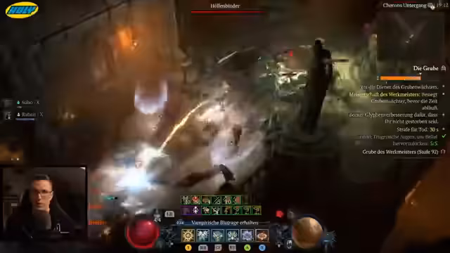 03:35:39Der Stream beginnt mit intensiver Build-Optimierung für den Paladin, wobei Glyphen und Aspekte wie 'Gebieter-Glyphe' und 'Flügelschlag-Schaden' getestet werden. Ressourcenmanagement und Schadensberechnungen stehen im Fokus, insbesondere mit Blick auf den Glauben-Wert. Der Goblin-Event wird erwähnt, während gleichzeitig Vorbereitungen für einen 100er Nightmare-Dungeon-Test mit der 'Crew-Rune' laufen. Kritisch diskutiert wird der Bug beim 'Weihe'-Skill, der Gegner nicht wie vorgesehen schwächt, was die Build-Effizienz beeinträchtigt.