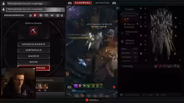 00:16:36Vitablo startet den Stream um 19 Uhr und diskutiert das Goblin-Event in Diablo 4. Er vermutet, dass Goblins in der offenen Welt und Nightmare-Dungeons spawnen, konnte jedoch bisher keine Events miterleben, da er die Saison früher beendete. Vitablo plant, durch das Event Obduzid zu farmen, da er Ressourcenmangel hat und hofft, über Schatzbresche-Siegel an bessere Drops zu kommen. Er erwähnt zudem die Optimierung seines Lagerplatzes für Diablo 4.