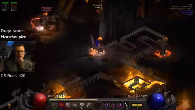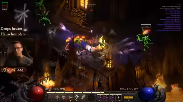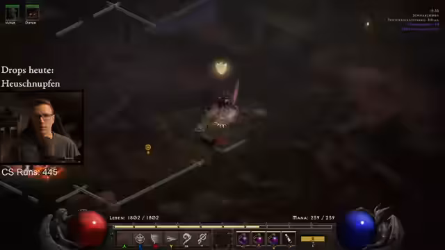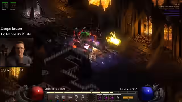 02:30:34Bei der Suche nach dem begehrten 'Isenharz' entwickelt der Streamer ein Ritual: Er möchte, dass der Chat bei jeder gefundenen 'Isenhearts' 'GZ' schreibt, um ein Gefühl von gemeinsamer Erfolgsgeschichte zu erzeugen. Als schließlich eine Isenhearts gedroppt wird, ist er sichtlich erleichtert und gerettet. Allerdings wird das Item kurz darauf wieder getraubt, was ihn aber nicht demotiviert. Er wünscht sich fortan mehr 'Enigma', 'Keys' und 'UT' (Uber Tristram), sieht die Ziele aber aufgrund der fehlenden Fortschritte als unrealistisch an.