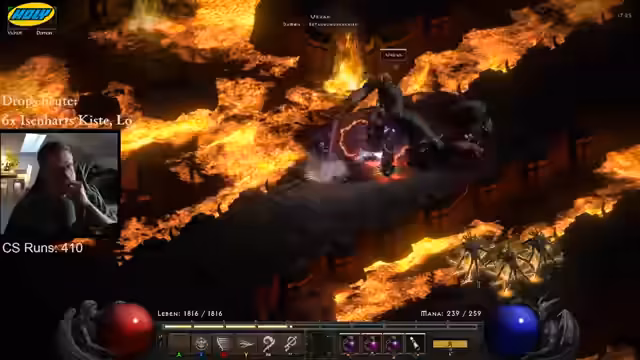 01:59:30Der Streamer hat keine konkreten Ziele mehr, sondern spielt CS-Runs, um Isenharzkisten zu farmen. Er hat in 30 Runs bisher keine gefunden, was ihn frustriert. Er weist darauf hin, dass Terrorzonen mit Herolds nichts bringen, wenn sie keine Items droppen. Trotzdem bleibt er motiviert und will weitergrinden, um seinem Ziel näherzukommen.