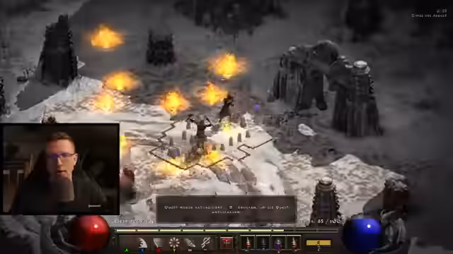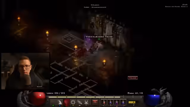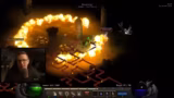 02:56:39Der Streamer ist gezwungen, in Akt 4 zu bleiben, um eine Levelstufe aufzuholen. Er wägt die Gebiete Chaos-Sanctuarium und Flammenfluss gegeneinander ab und stellt fest, dass beide ähnlich gut für das XP-Farming geeignet sind. Ein schwerwiegender Fehler führt zu einem unvorsichtigen Tod, da die Waffe scheinbar teleportiert wird, der Streamer selbst jedoch nicht. Der Verlust von Gold und wichtigen Items wie einem Ring ist die Folge. Die Rückkehr zur Leiche erfordert eine lange Reise vom Wegpunkt aus.