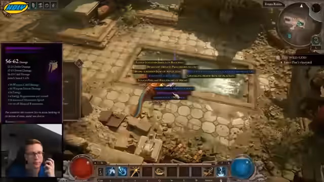 04:21:40Ein schwieriger Kampf gegen den Boss Hippocampus führt zu einem Tod, aber im zweiten Versuch wird er besiegt. Das analysierte Loot des Bosses besteht hauptsächlich aus schwerer Rüstung und Waffen. Der Streamer deckt das neue Seltenheits-System auf, bei dem es zusätzlich zu legendären Gegenständen (Epics) auch seltene, grüne 'Infrequente'-Gegenstände gibt, die einen Bonus-Affix besitzen. Er testet auch das Ritualsystem in der Stadt, bei dem man Boss-Remnants opfern kann, um sie erneut zu beschwören und zu farmen.
