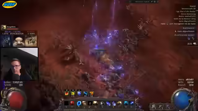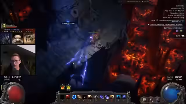 05:09:54Der Streamer navigiert durch die gefährlichen Abgründe, wobei er spezielle auf unvorhersehbare Monsterbewegungen achten muss, um nicht zu sterben. Er erklärt den Nexus-Prozess, bei dem man eine Map mit wenigen Eigenschaften benötigt, um mehr Portale zu erhalten. Er schafft den Nexus und beginnt mit dem Farmen der zuvor erstellten Premium-Karten, was zu einer massiven Währungsausbeute führt und den Unterschied zum normalen Mapping deutlich macht.