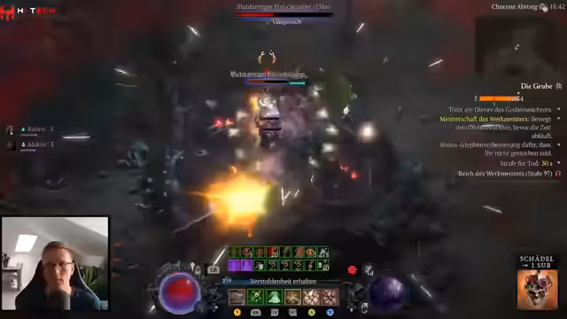 00:15:26Der Streamer beginnt mit der Ankündigung, dass der PTR für Season 9 startet und zuerst die Hydra-Zauberin als getesteter Build im Fokus stehen wird. Die erste Analyse betrifft die massive Schadensreduktion des Todesfalle-Builds von 99,6% in Season 9. Trotz diesem Nerf wird erwartet, dass der Build weiterhin im Endgame spielbar bleibt, da die Damage-Hebel in tiefen Gruben eskalieren. Der Streamer äußert sich auch über die Gruben-Skalierung, bei der jede Grubenstufe die Monster-HP um ca. 28% erhöht, und die Problematik nerviger -Elite-Gegner im Pit-Pushing, welches er als die unangenehmste Aktivität im Spiel bezeichnet.