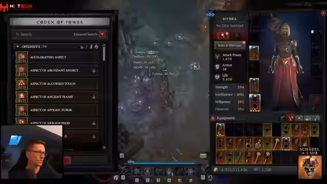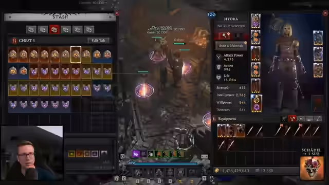 03:52:44Der Fokus des Streams verlagert sich stark auf den neu erarbeiteten Hydra-Build für die Zauberin. Der Streamer analysiert zunächst die Schadensausbeute, die Milliardenwerte erreicht, und stellt dabei fest, dass die neuen Aspekte, insbesondere einer mit 1500% Schaden, die Klasse extrem stark machen. Er beschreibt das Gameplay als komplex, da man Hydren platzieren und Mana verwalten muss, was es von reinen Speedfarm-Builds wie Todesfalle unterscheidet. Trotz des hohen Damages ist das Bild laut Streamer kein übermächtiges OP-Build, da es auf Bosskampf und nicht auf Geschwindigkeit optimiert ist.