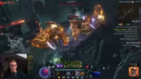 00:35:37Der Streamer konzentriert sich darauf, die Glyphen seines Jäger-Builds auf Level 100 zu bringen. Nach mehreren vergeblichen Versuchen in 97er Gruben schafft er es, fünf Glyphen auf Level 99 zu pushen. Währenddessen kommuniziert er im Creator-Discord, um den Startzeitpunkt des PTR zu erfahren, der wegen technischer Probleme auf 20 Uhr verschoben wurde. Nachdem er alle Glyphen erfolgreich auf Level 100 gebracht hat, wechselt er zur Jägerin zurück, um mit Speedfarming Paragon-Level zu farmen und sich auf den bevorstehenden PTR-Start vorzubereiten.