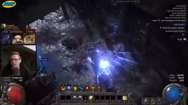 00:17:27Das Hauptziel für die Season ist es, einen Headhunter zu erlangen. Dafür werden neue Ringe und ein neuer Helm benötigt, um die Widerstände und anderen Stats am Ende zu optimieren. Der Streamer hat bereits einen neuen Helm und einen Ring erworben, bemerkt aber, dass ein zweiter Sockel im Helm für die Flexibilität bei den Widerständen extrem hilfe wäre. Nach dem Zünden eines Wahlorbs stellt er fest, dass der Helm nur einen Sockel hat, was die weitere Planung erheblich erschwert.