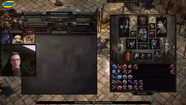 03:11:02Die Suche nach passenden Ringen und Helmen für den Build gestaltet sich als schwierig und zeitaufwendig. Der Streamer filtert den Markt sehr spezifisch nach Ringen mit bestimmten Eigenschaften wie Leben, Triple Resi und doppelter Tier-1-Schadensstat. Obwohl er einen Ring für 23 Divine Orbs findet, fehlt ihm immer noch ein zweiter Ring mit weniger, aber dafür Magic Find. Die Suche nach Helmen verläuft ähnlich frustrierend, da passende Exemplare kaum auftauchen und ein sehr spezifischer Roll benötigt wird.