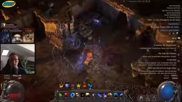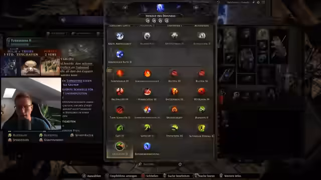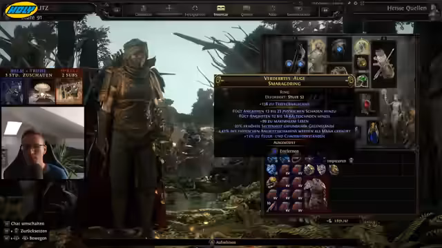 01:32:20Der Lootfilter und das Trading Overlay werden erwähnt, die alles im Trading Guide erklärt haben. Ein Willegem 19 wird gefunden, den Herold des Donners deutlich bufft. Die Skillung auf dem Amulett wird optimiert, 'hellwach' wird durch andere Skills wie 'Stadt der Wahl' ersetzt. Die Defensive wird durch 'Abwenden' stark verbessert. Dennoch ist das Ziel, nicht auf Energieschild (ES) zurückzugreifen, da dies nicht zur Vorstellung einer Geschicklichkeitsklasse passen würde. Ein paar Tode werden in Kauf genommen.